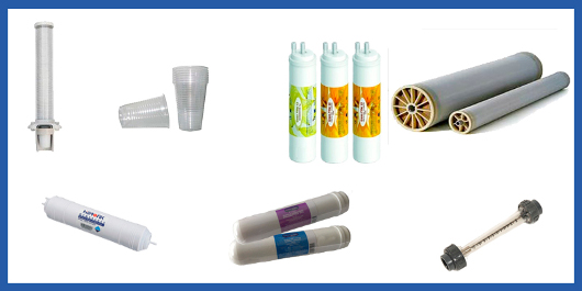 | Torneiras; Bombas; Pressostatos; UV’s; Transformadores; Cartuchos/Meios Filtrantes. | Suporte para Copos; Copos; Caudolímetros; Cartuchos; Membranas; etc. | |