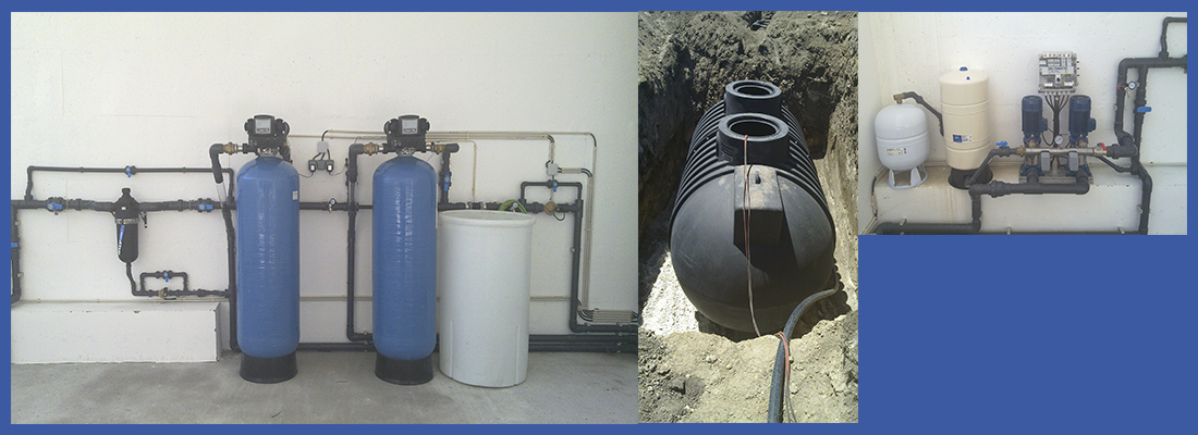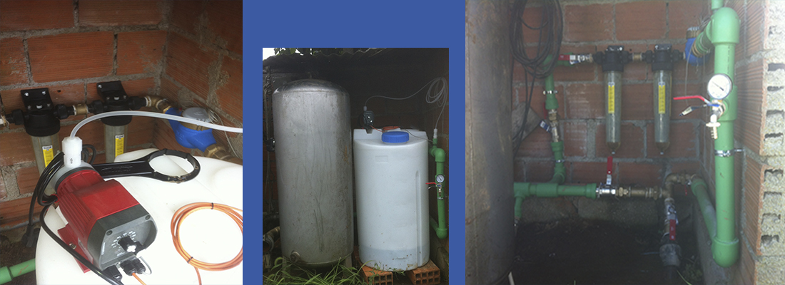 | -Decloração Duplex + Osmose Inversa 750L/h + 2x Depósito Vertical 3.500L + Eletrobomba de Superfície U5-180/6; -Filtro Automático + Declorador Automático + Depósito Vertical 3.500L; -Osmose Inversa (2.500L/h). |